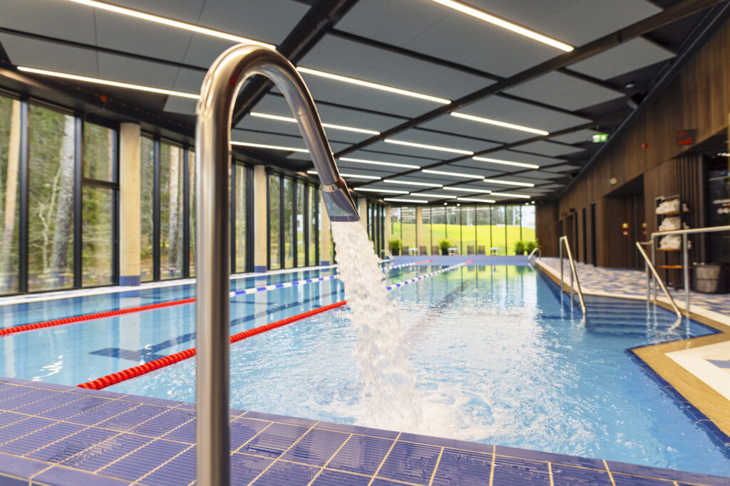 Suur kolme rajaga 25-meetrine ujumisbassein, ruumikas laste- ja mõnubassein, mullivannid ja lõõgastusala ning seda kõike looduskauni vaate keskel.